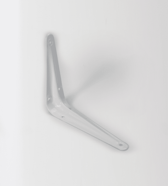 White metal ‘L’ bracket or support suitable for MFC shelves. 100mm x 125mm. 6 pre-drilled holes for screws. Screws and fittings sold separately.